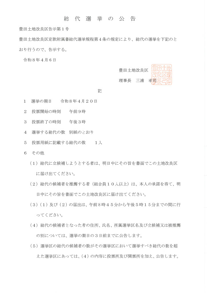 令和8・9年度 一般(指名)競争参加資格申請について(豊田土地改良区)